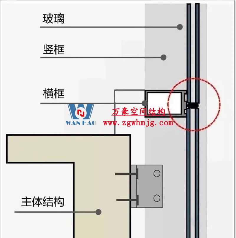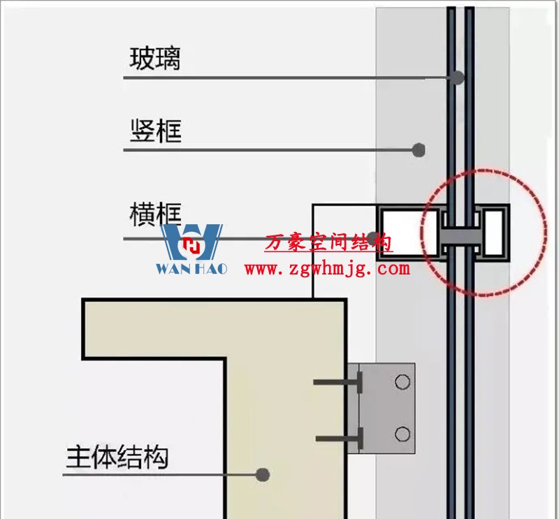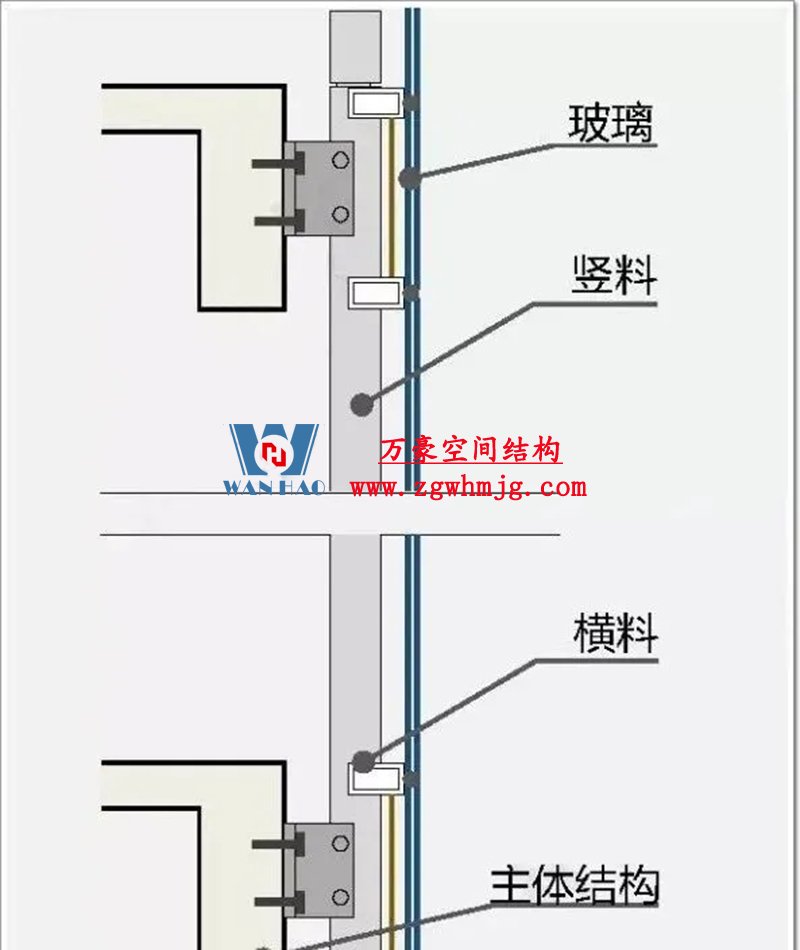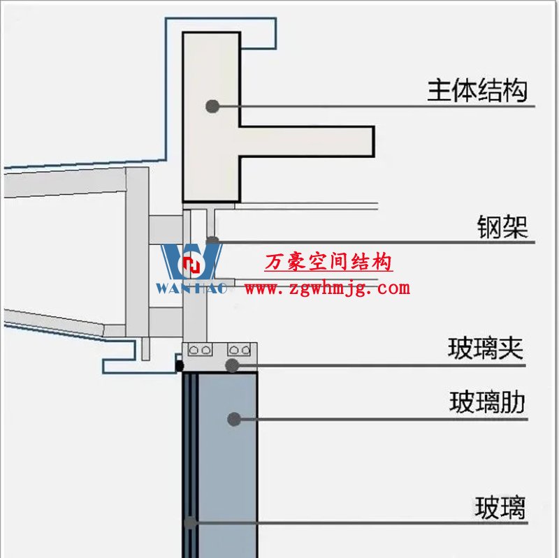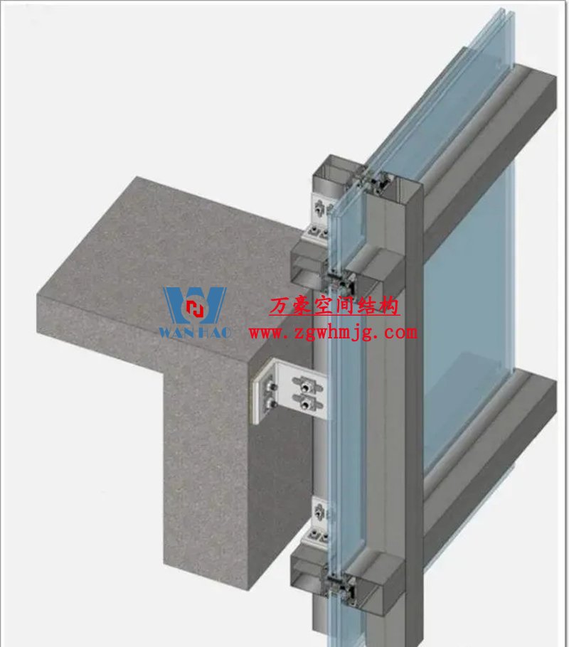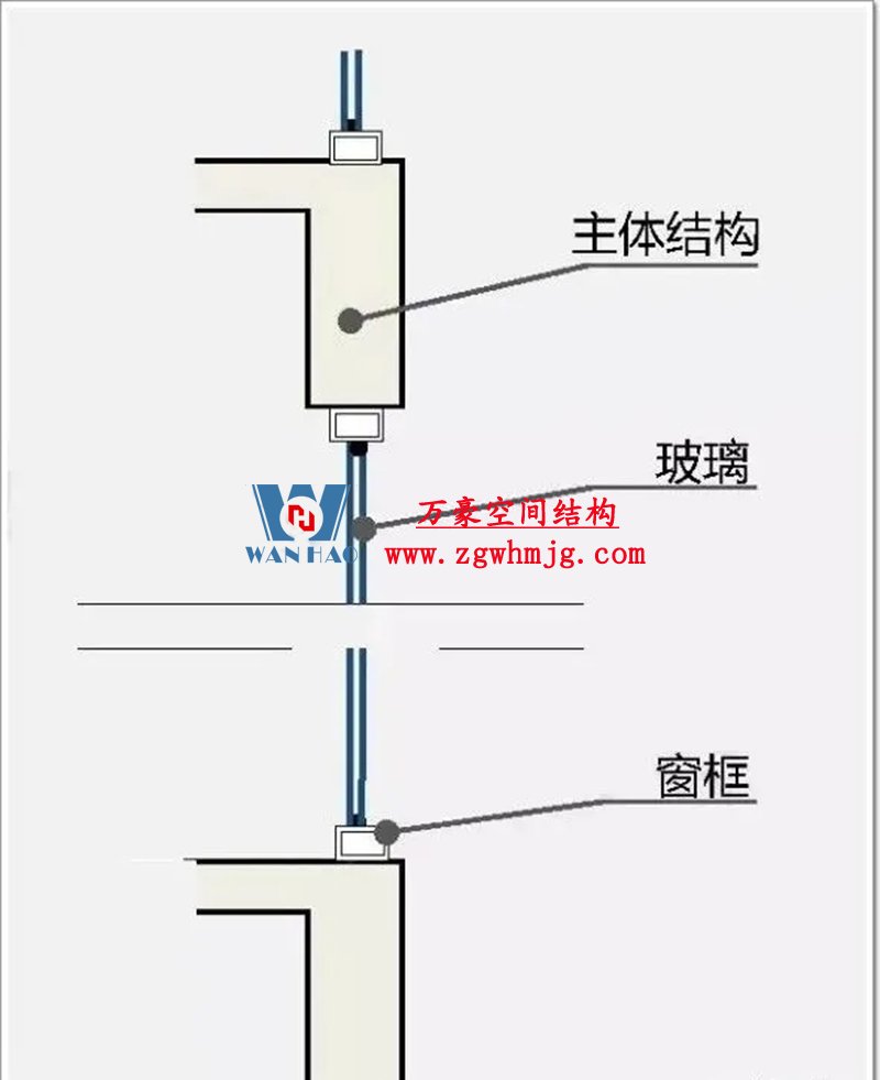 幕墻是通過錨固支座,以點(diǎn)傳遞的方式將自重和所受荷載傳給主體結(jié)構(gòu)。