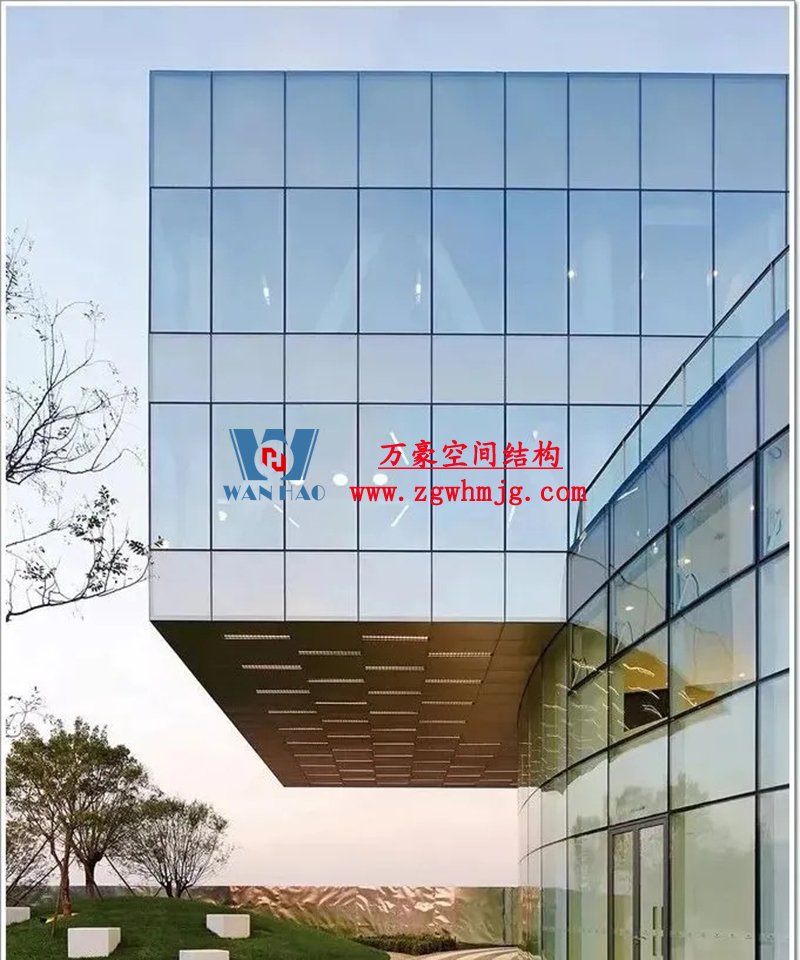 點(diǎn)式幕墻比較好理解,玻璃與主體結(jié)構(gòu)是通過爪件點(diǎn)式連接,主體結(jié)構(gòu)有鋼立柱、拉索、桁架等。點(diǎn)式幕墻的價(jià)格在這幾種形式里算最貴的,大概在1600元/㎡。