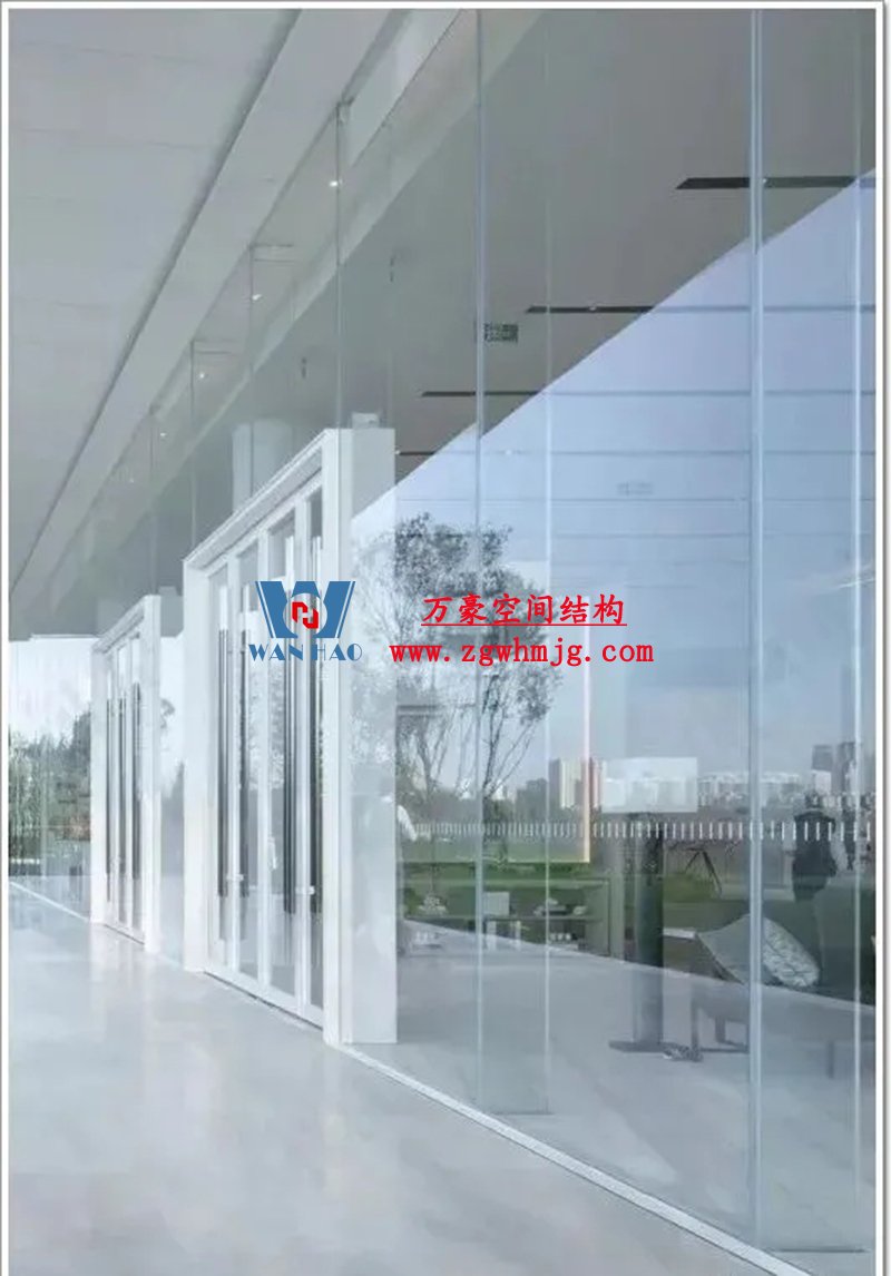 全玻璃幕墻的美觀性和整體性最高,是通過玻璃肋作為支承結(jié)構(gòu),實(shí)現(xiàn)全立面玻璃結(jié)構(gòu)。相比于明框、隱框,全玻璃的價(jià)格高一些,在1200元/㎡。