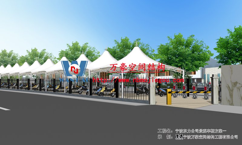 膜結(jié)構(gòu)車棚是用膜材作為圍護(hù)構(gòu)件,用鋼索和鋼桿(抑或是鋼架)作為膜材的支撐結(jié)構(gòu)。同時(shí)膜結(jié)構(gòu)柔順的曲面,廣闊的空間,半透明的室內(nèi)環(huán)境,是其具有膜結(jié)構(gòu)停車棚的廣闊發(fā)展前景,而在2010年最具有代表性的就是萬眾矚目的世博軸,索膜結(jié)構(gòu)將成為21實(shí)際空間結(jié)構(gòu)發(fā)展的主流。