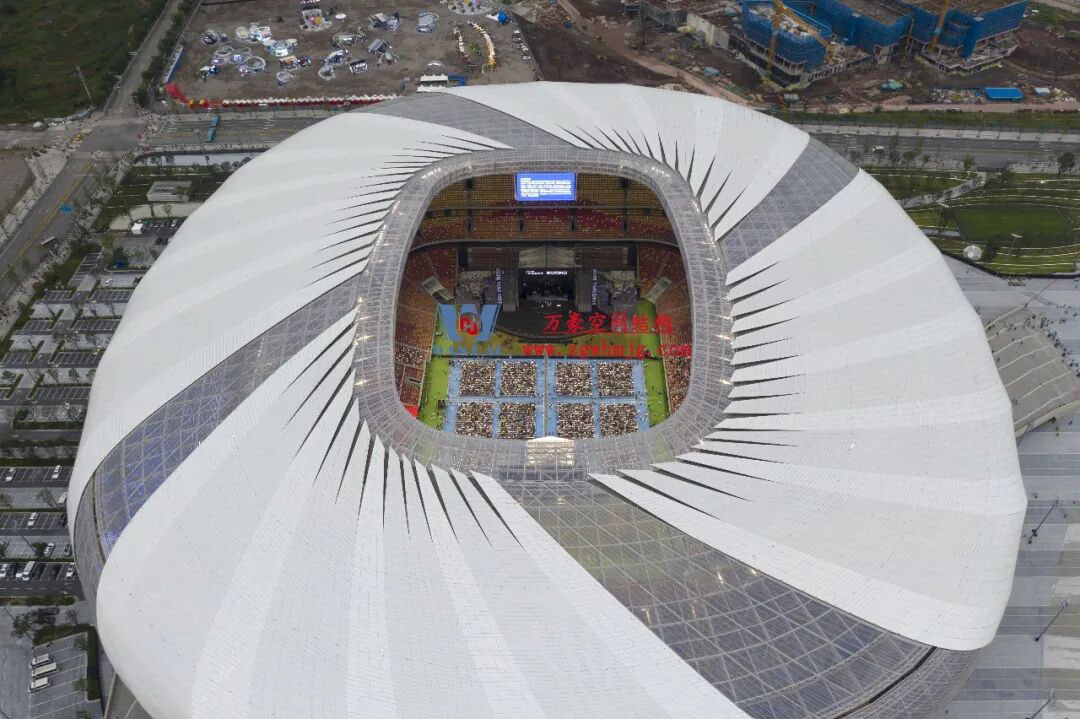 重慶龍興足球場由中建西南院設(shè)計,始建于2020年4月,于2022年12月竣工。球場總占地面積約303畝,總建筑面積為166900平方米,共設(shè)有6萬座席,2000余個機(jī)動車停車位,整體結(jié)構(gòu)分為地面四層、地下一層。球場包含競賽區(qū)、媒體和轉(zhuǎn)播區(qū)、商業(yè)運營區(qū)、觀眾區(qū)等多個功能區(qū)。球場南看臺有一個超過9000座的主隊超級粉絲看臺,是國內(nèi)目前最大的主隊超粉看臺。景觀照明LED屏總面積約10萬平方米,是世界上最大的LED屏之一。