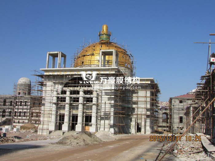 奧地利館位于橫店影視城夏園內(nèi),館頂采用施工難度很大的雙曲面金屬外面結(jié)構(gòu),館頂結(jié)構(gòu)高度15.5米,直徑18.3米,底部標(biāo)高18.8米,經(jīng)過我司不斷努力,中間不斷和業(yè)主單位溝通,項目終于馬上就要完工,相信完工后又會為橫店影視城增添一道新的風(fēng)景。