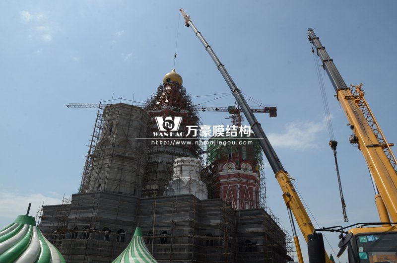 您所在的位置: 首頁>>新聞動(dòng)態(tài)>>萬豪資訊橫店影視城俄羅斯館頂部吊裝開始