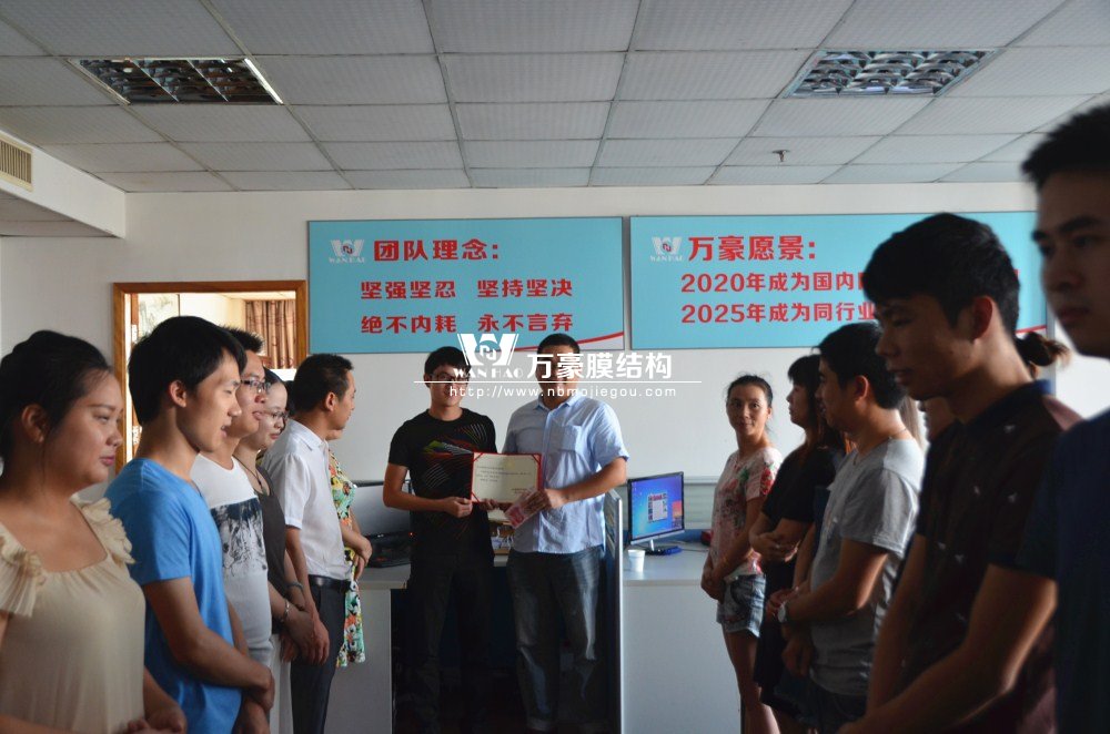 我司承建的福建永輝超市頂棚膜結(jié)構(gòu)工程項(xiàng)目獲得業(yè)主頒發(fā)“施工優(yōu)秀獎(jiǎng)”。