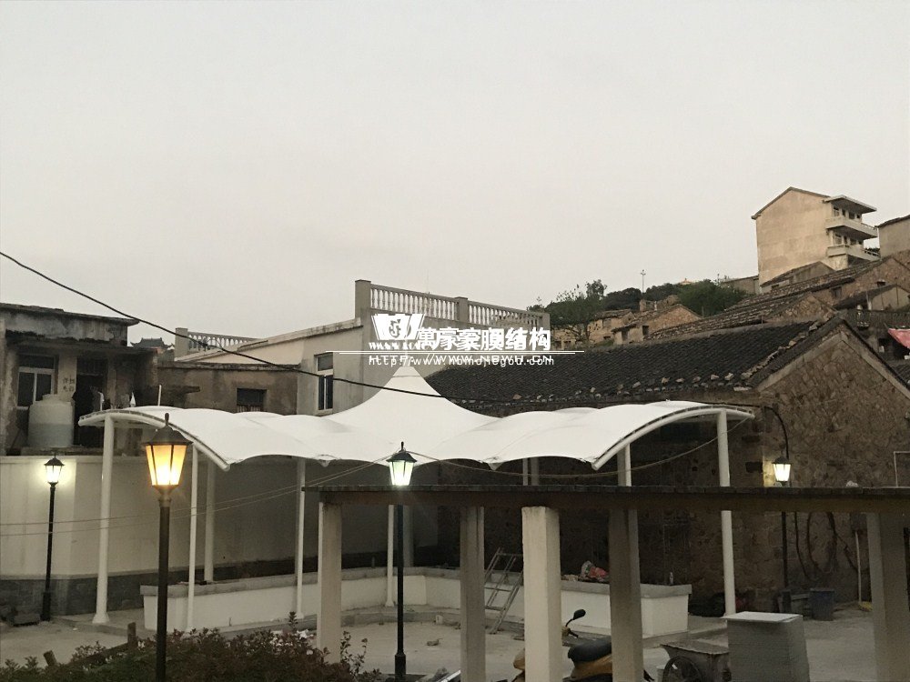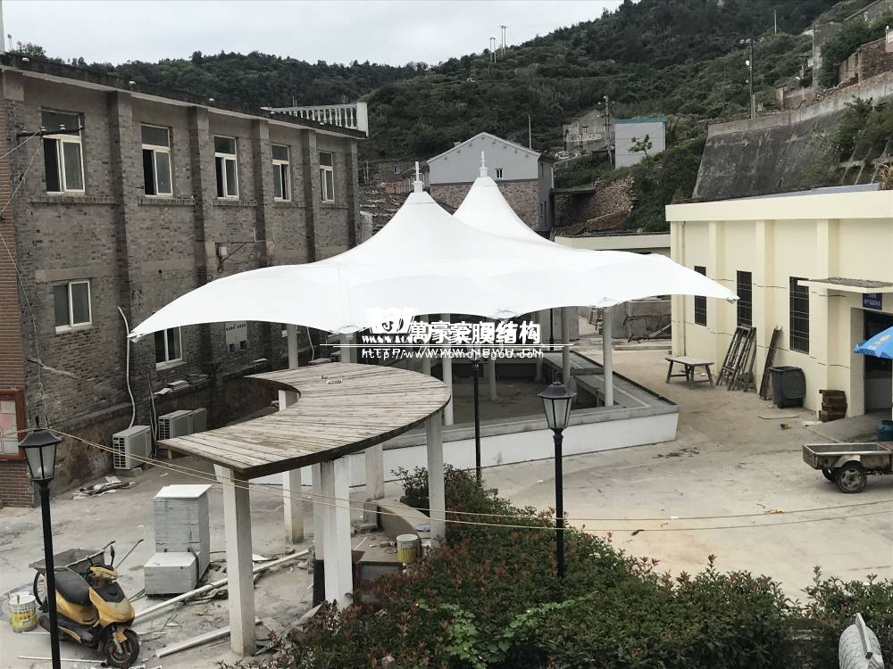 大陳島海鮮膜結(jié)構(gòu)工程位于下大陳島衛(wèi)星村步行街后半段(臺(tái)州雷力建設(shè)有限公司對(duì)面),該工程由我司現(xiàn)場考察、多次深化、制作及安裝,設(shè)計(jì)抗臺(tái)等級(jí)12級(jí),鋼構(gòu)最高點(diǎn)高度達(dá)6.5米;