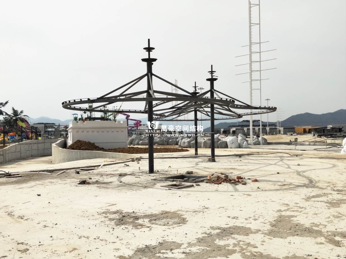 海闊天涳水世界鋼膜結(jié)構(gòu)工程,由寧波萬豪空間結(jié)構(gòu)工程有限公司承建?,F(xiàn)場測量、深化設(shè)計(jì)、制作及安裝由寧波萬豪空間結(jié)構(gòu)工程有限公司全權(quán)負(fù)責(zé);用鋼量高達(dá)180噸,建筑面積達(dá)5000平米。