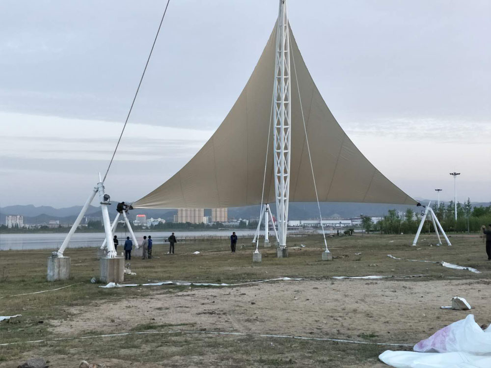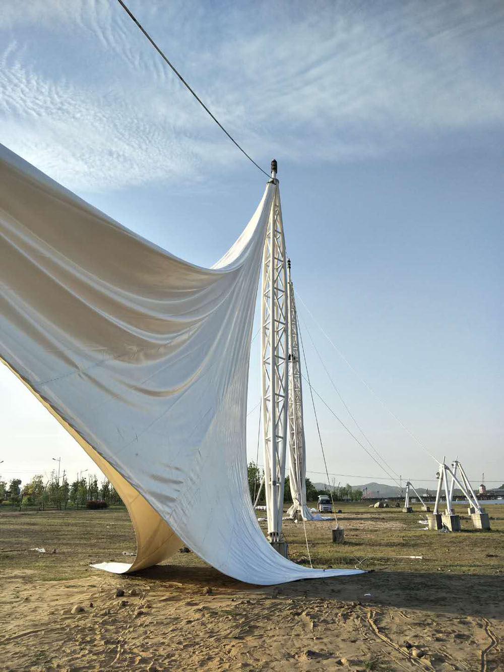 高橋灣現(xiàn)代產(chǎn)業(yè)園單飛燕、雙飛燕景觀膜結(jié)構(gòu)工程地址位于安徽省霍山縣高橋灣現(xiàn)代產(chǎn)業(yè)園。此次工程由寧波萬豪空間結(jié)構(gòu)工程有限公司全權(quán)負(fù)責(zé),項目已近尾聲,已經(jīng)開始裝膜。