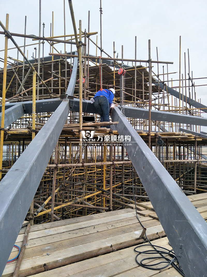 該項(xiàng)目主要分為兩個(gè)部分,分別是綜合辦公樓鋼膜結(jié)構(gòu)項(xiàng)目和觀光塔鋼膜結(jié)構(gòu)項(xiàng)目,總用鋼量500噸,膜結(jié)構(gòu)展開(kāi)面積4000平米。