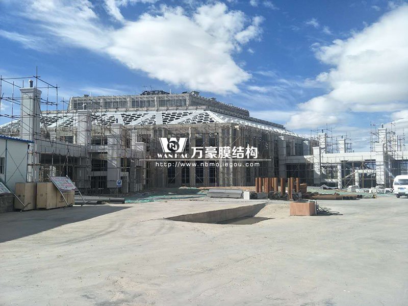 茶卡鹽湖景區(qū)膜結構工程從開工到現在已經經歷了一段時間,現場工程正在如火如荼的進行著。