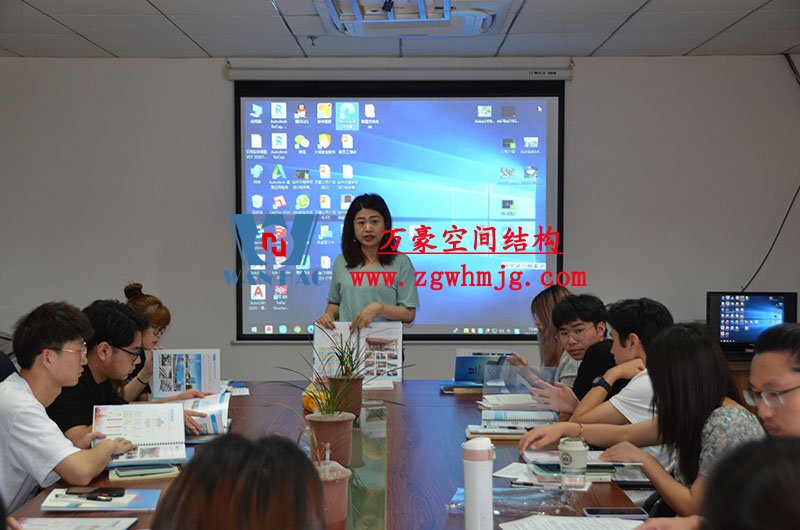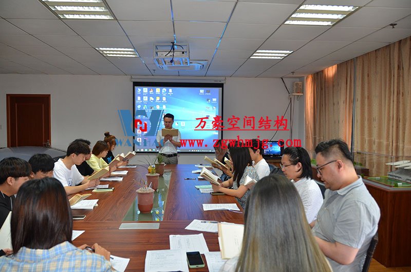 然后,我們的銷售主管教新員工們學(xué)習(xí)了公司晨會(huì)流程以及膜結(jié)構(gòu)建設(shè)工程項(xiàng)目流程。