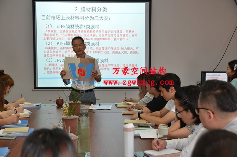 為更好的掌握膜結(jié)構(gòu)技術(shù)知識(shí),更專業(yè)的為客戶服務(wù),2021年6月25日,萬(wàn)豪空間結(jié)構(gòu)對(duì)新進(jìn)員工進(jìn)行了膜結(jié)構(gòu)專業(yè)知識(shí)培訓(xùn)。