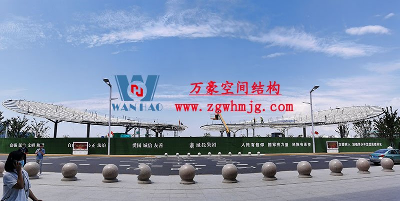 滬通鐵路張家港站地方配套工程-站前西側(cè)旅客集散區(qū)蝴蝶造型天幕工程擬建結(jié)構(gòu)為蘇州張家港高鐵站站前廣場蝴蝶造型雙曲面殼體膜結(jié)構(gòu),共分為大、小翅膀四部分。