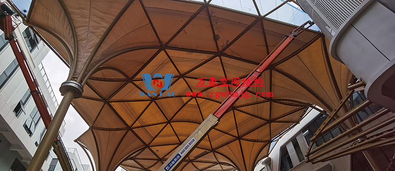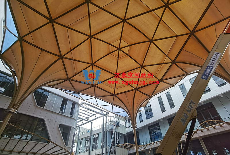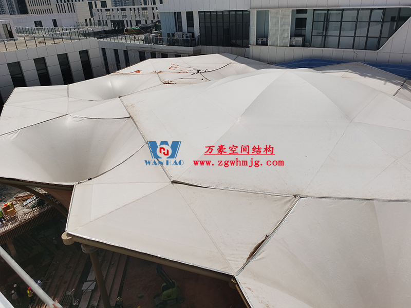 其中,中國-東盟特色商品匯聚中心膜鋼構(gòu)工程由寧波萬豪空間結(jié)構(gòu)工程有限公司承建。該項(xiàng)目用鋼量260噸,ptfe膜結(jié)構(gòu)展開面積3500平米,ETFE膜結(jié)構(gòu)展開面積1500平米。