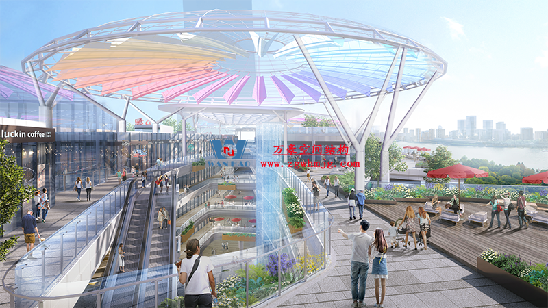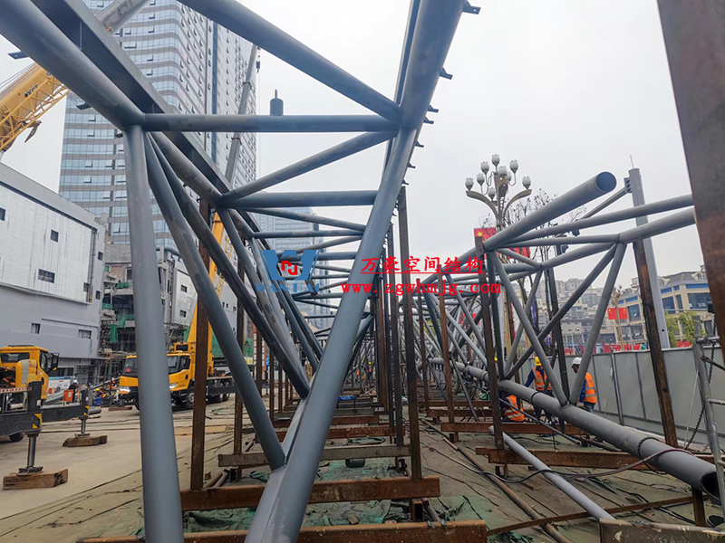 明宇廣場6號地塊商業(yè)(萬達廣場)改造項目鋼膜結構ETFE蓋頂天幕工程進入鋼結構吊裝階段