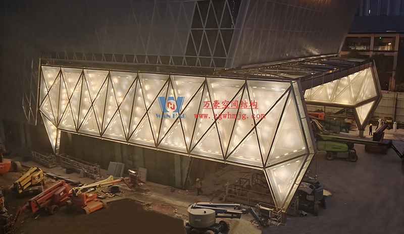 中建錦源匯廣場10-3#樓膜結(jié)構(gòu)工程位于四川省成都市高新區(qū)應(yīng)龍南一路與觀東二街交匯處,該項(xiàng)目ETFE膜結(jié)構(gòu)展開面積700平米,PTFE膜結(jié)構(gòu)展開面積700平米。由寧波萬豪空間結(jié)構(gòu)工程有限公司承建。