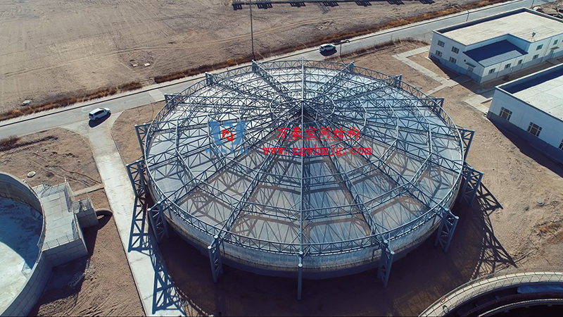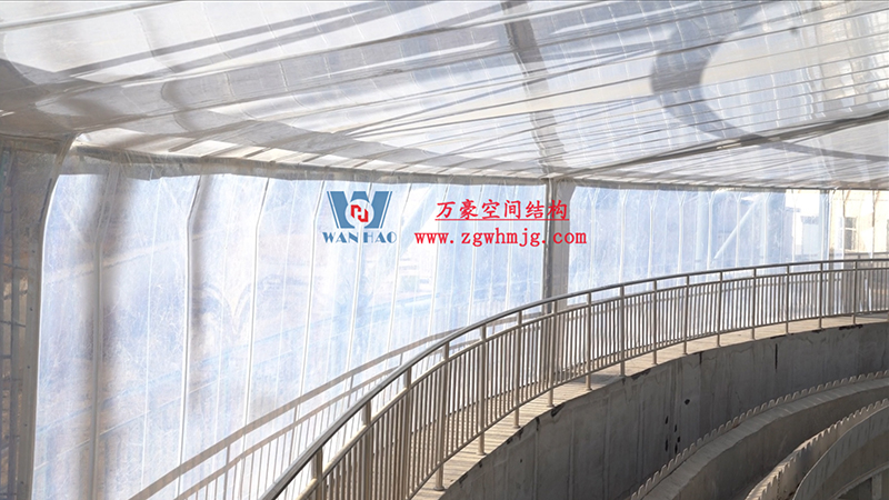 格爾木污水處理池保溫加蓋工程是由直徑60米和直徑30米的不等池子組合完成,采用軟玻璃ETFE膜材料作為基材,具有高透光率、自重輕盈、柔軟可張拉、抗震效果好等特點(diǎn),完美達(dá)到污水處理池對陽光和紫外線照射的要求,屬于國內(nèi)首例ETFE在工業(yè)污水保溫加蓋中應(yīng)用工程,具有廣闊的應(yīng)用前景,值得推廣宣傳,助力中鋼協(xié),為行業(yè)發(fā)展努力奮斗。