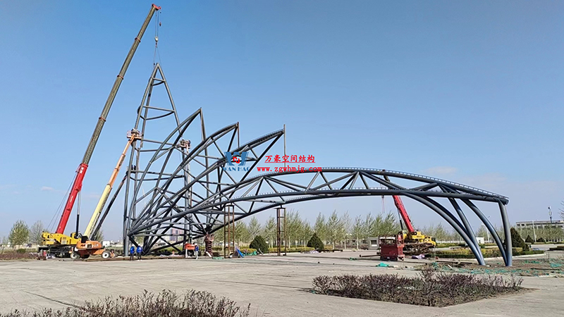 項目正在進(jìn)行大門主體鋼構(gòu)的拼接工作,由現(xiàn)場照片可以看出,主體鋼構(gòu)部分的拼裝已經(jīng)接近尾聲,大門的整體造型已經(jīng)能夠完整的凸顯出來,后期將繼續(xù)緊抓工期節(jié)點(diǎn),進(jìn)入鋼結(jié)構(gòu)的收尾工作以及膜結(jié)構(gòu)安裝的前期準(zhǔn)備工作。期待項目的早日完工,能夠盡早一睹項目的風(fēng)采。